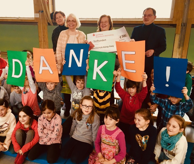 Im Oktober 2017 fand ein Benefizkonzert statt, dessen Erlös der Förderung der Musik an Rosenheimer Grundschulen zugedacht war. Neben der Grundschule Pang wurde jetzt auch die Schule Aising ausgewählt, die mit dem Kinder-Opern-Ensemble Papageno ein Opernprojekt an die Schule geholt hat. Gestern Vormittag überreichten Annette Kopf und Lonika Herzog (Mitte links und Mitte rechts) die Spende im Wert von 500 Euro an Konrektorin Susanne Bauer (links), Rektor Gerhard Walch und die Schulkinder. Schlecker
